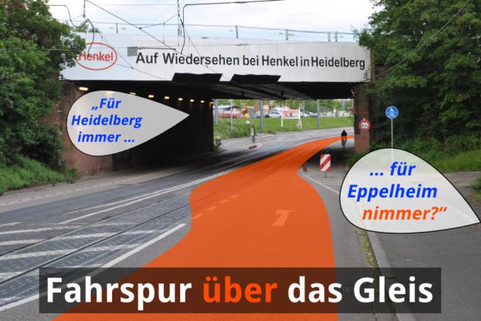 Nicht aber, wenn Mutter Heidelberg ruft: Kennen sie diese Stelle? Überfahren des Gleisbetts? Kein Problem! «Für Heidelberg immer, für Eppelheim nimmer.»