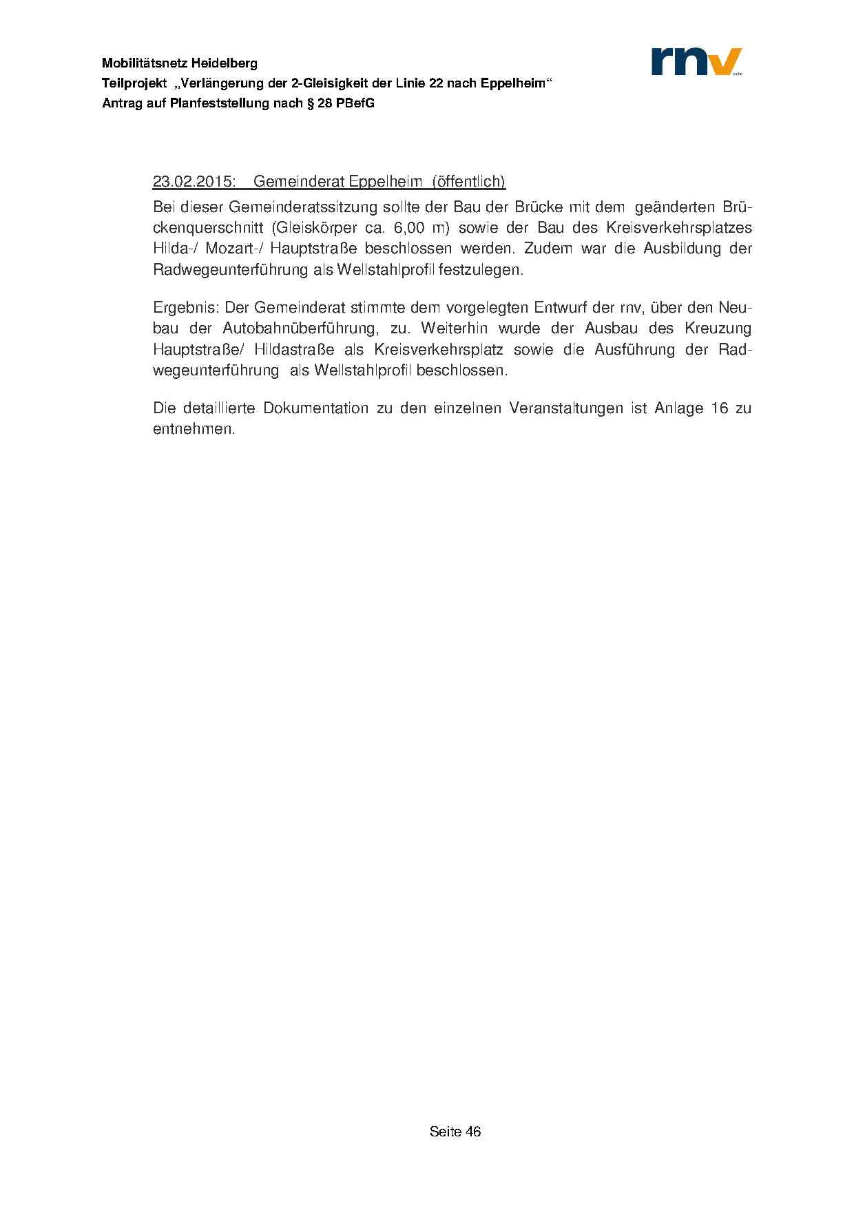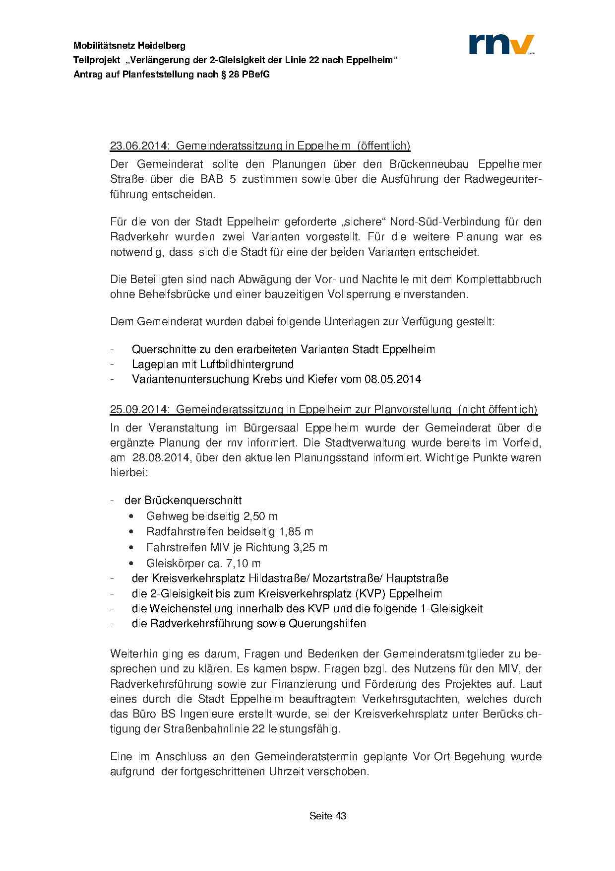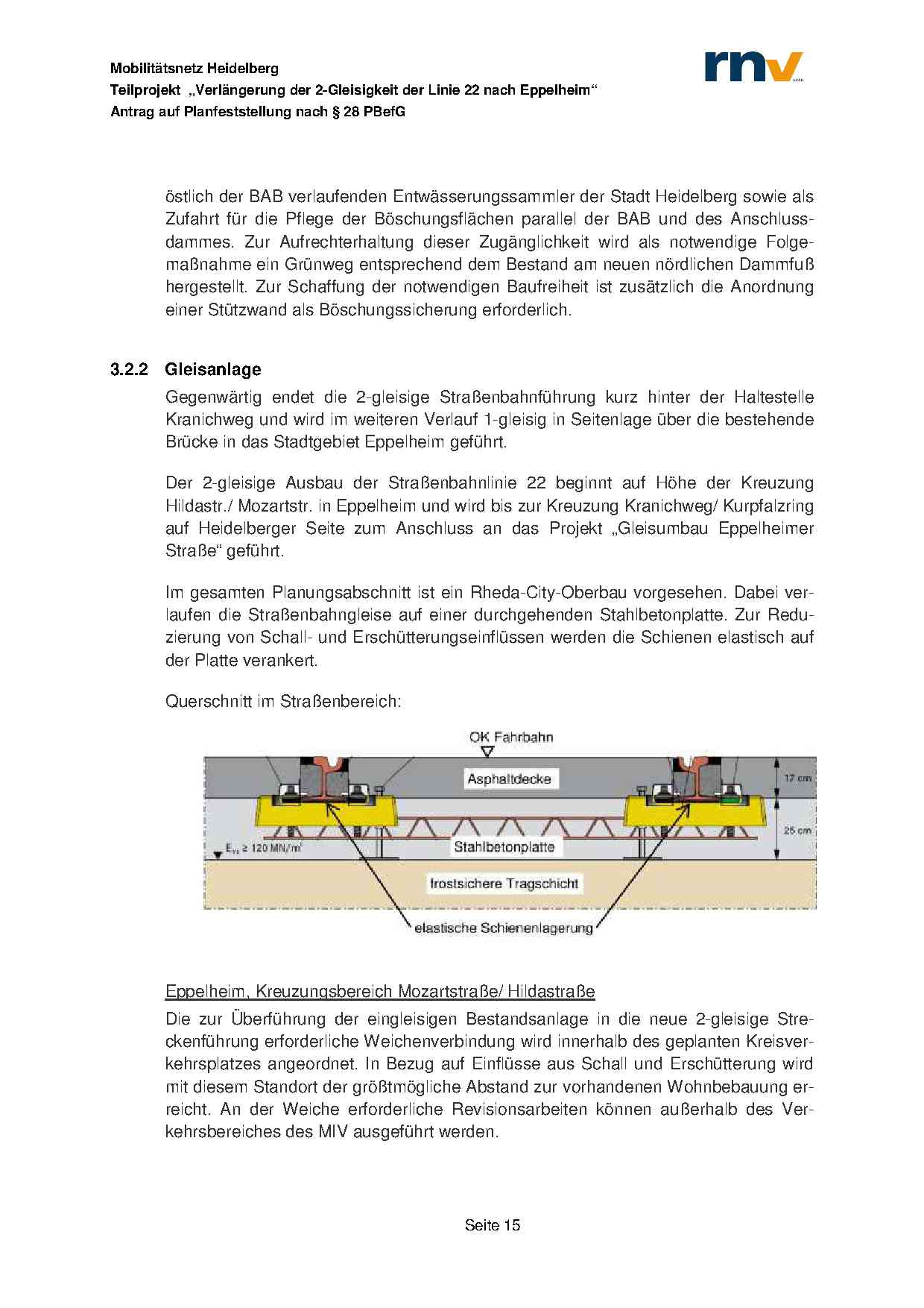 Hier wird erstmals das Dilemma des Plansfeststellungsgebiets erkennbar. Das Gebiet ist gemeindeübergreifend, und Planer sind mit der RNV auch Heidelbergs stadteigene HSB. Die Eppelheimer Gemeinderäte haben nicht gemerkt, dass damit die Abgase, Lärm und Weichenerschütterungen nach Eppelheim geschoben werden. Die weiteren Anlagen belegen dies, wenn man sie durchliest. Ja, wenn …