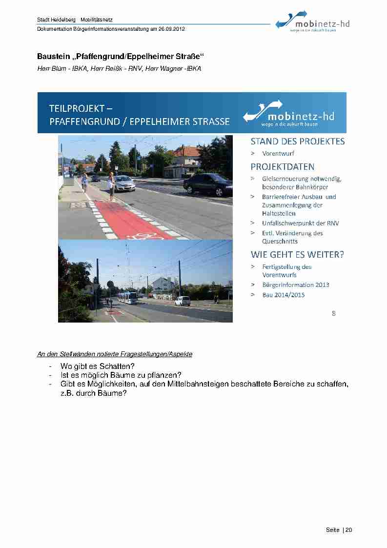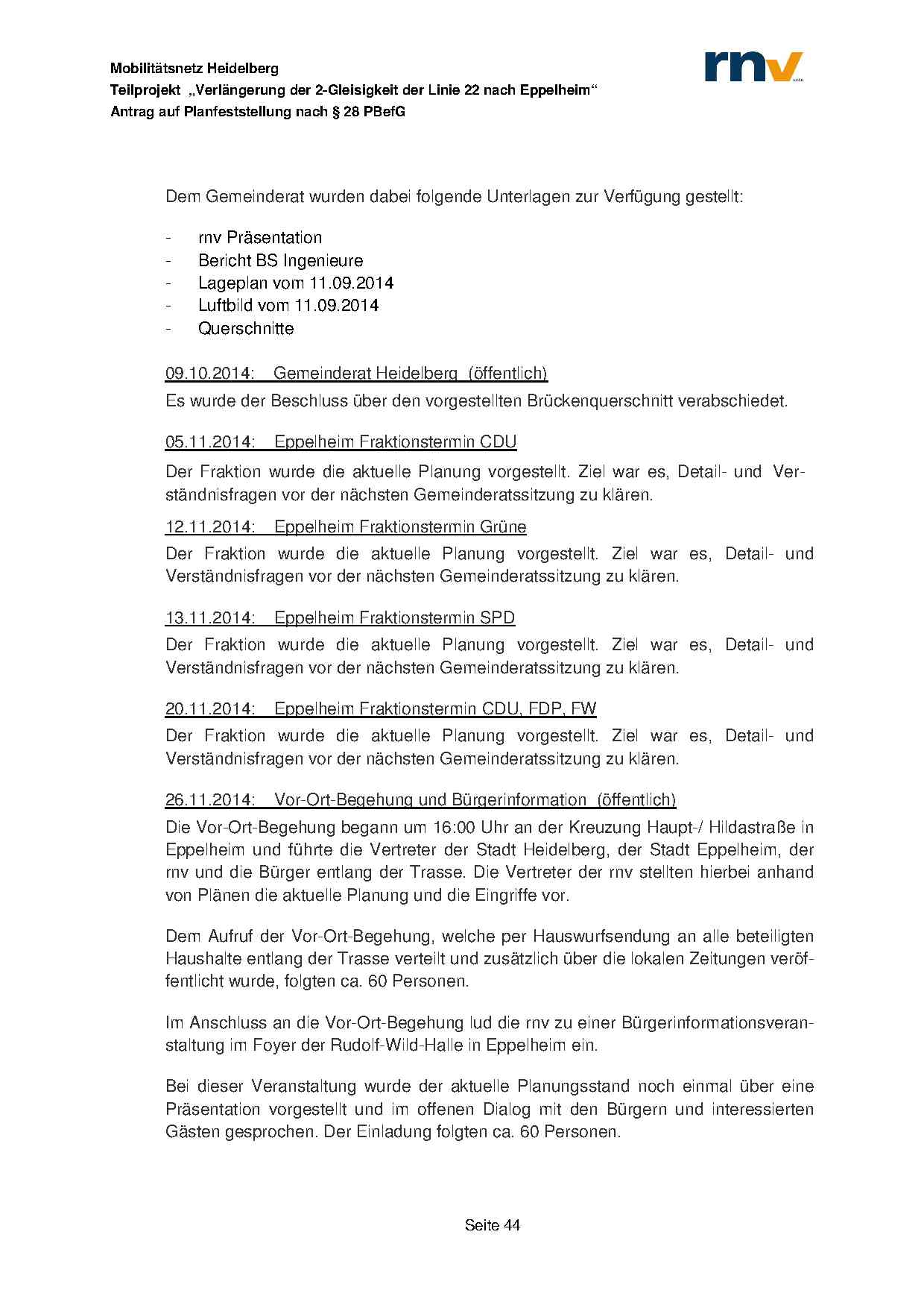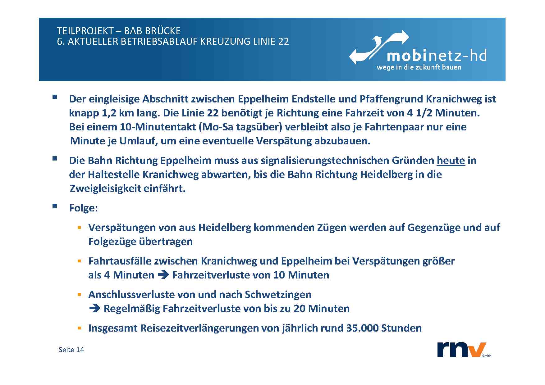 Hier wird erstmals das Dilemma des Plansfeststellungsgebiets erkennbar. Das Gebiet ist gemeindeübergreifend, und Planer sind mit der RNV auch Heidelbergs stadteigene HSB. Die Eppelheimer Gemeinderäte haben nicht gemerkt, dass damit die Abgase, Lärm und Weichenerschütterungen nach Eppelheim geschoben werden. Die weiteren Anlagen belegen dies, wenn man sie durchliest. Ja, wenn …
