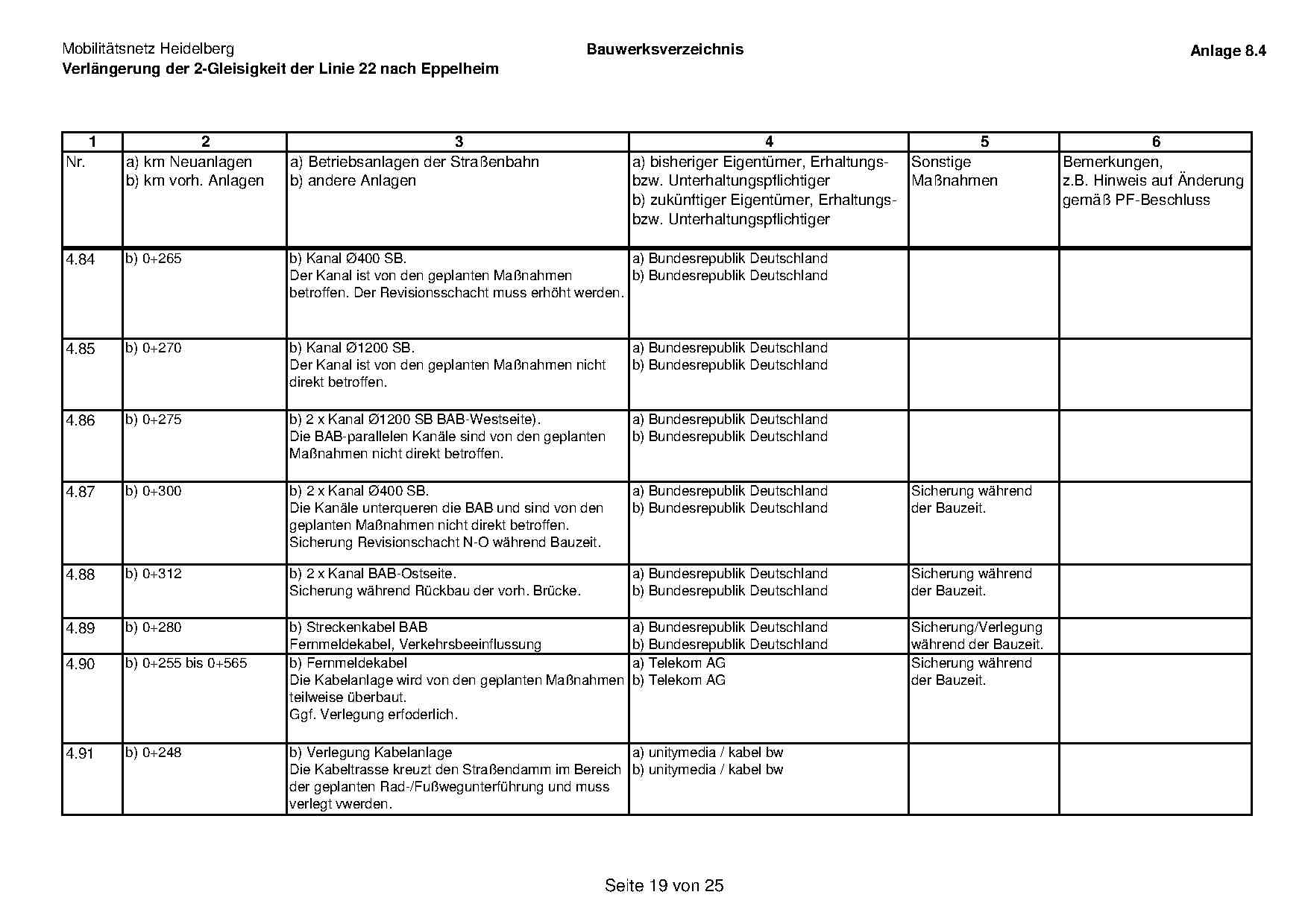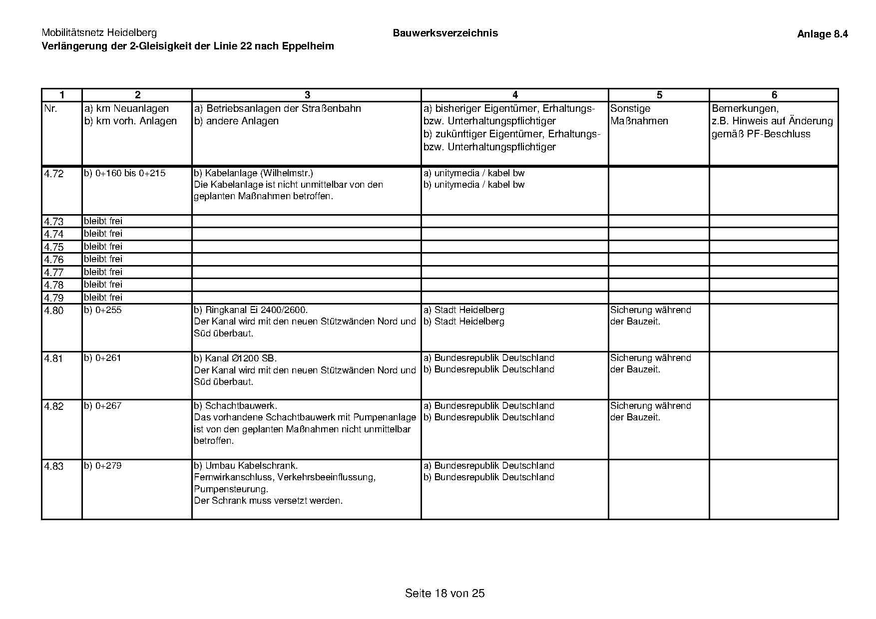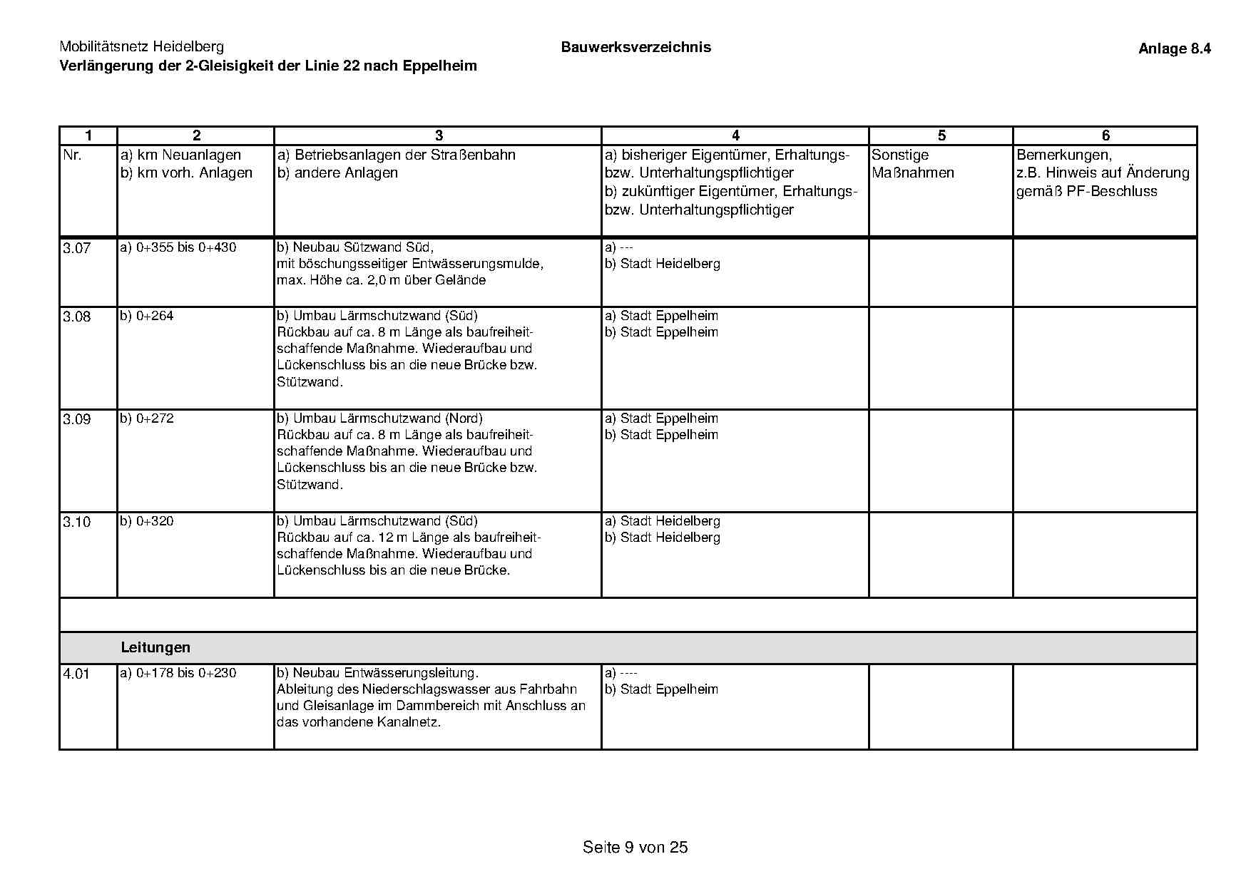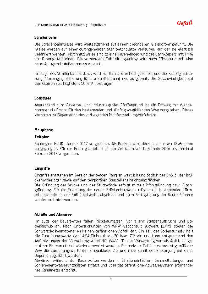 Warum belästigt man damit die Eppelheimer Bürgerinnen und Bürger? Wenn es unseren kommunalen Welterklärern wichtig erscheint, dann sollen sie es doch bitte mal der Bundesfernstraßenverwaltung oder dem Bundesverkehrsminister erklären. Das schafft Orientierung! Man stelle sich nur mal vor, Eppelheim oder Heidelberg planen zwei Gleise durch „Omas sprichwörtliche klein' Häuschen“ …- „Baustelleneinrichtung/Zuwegung (Anlage 9)“