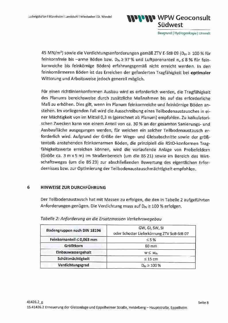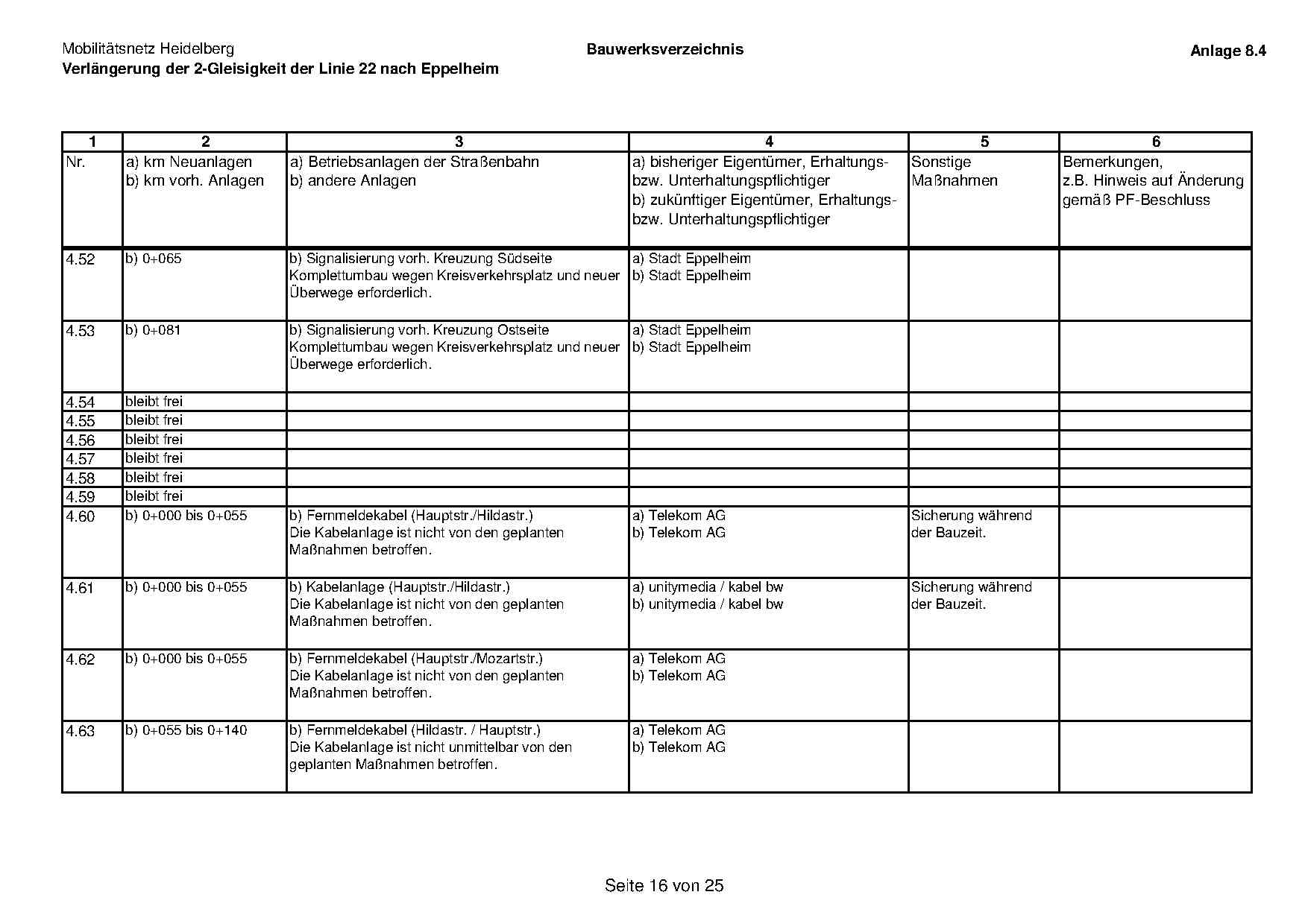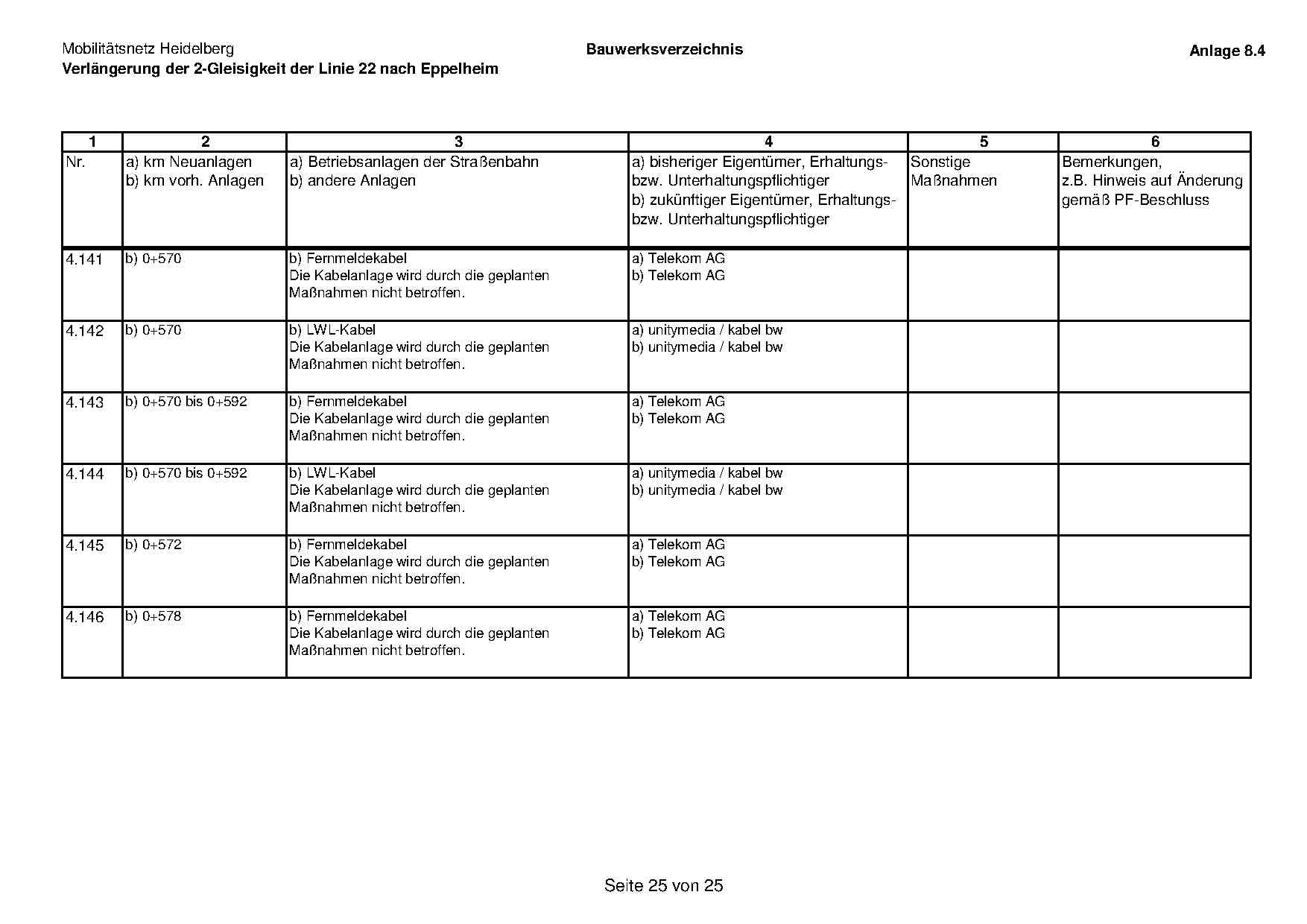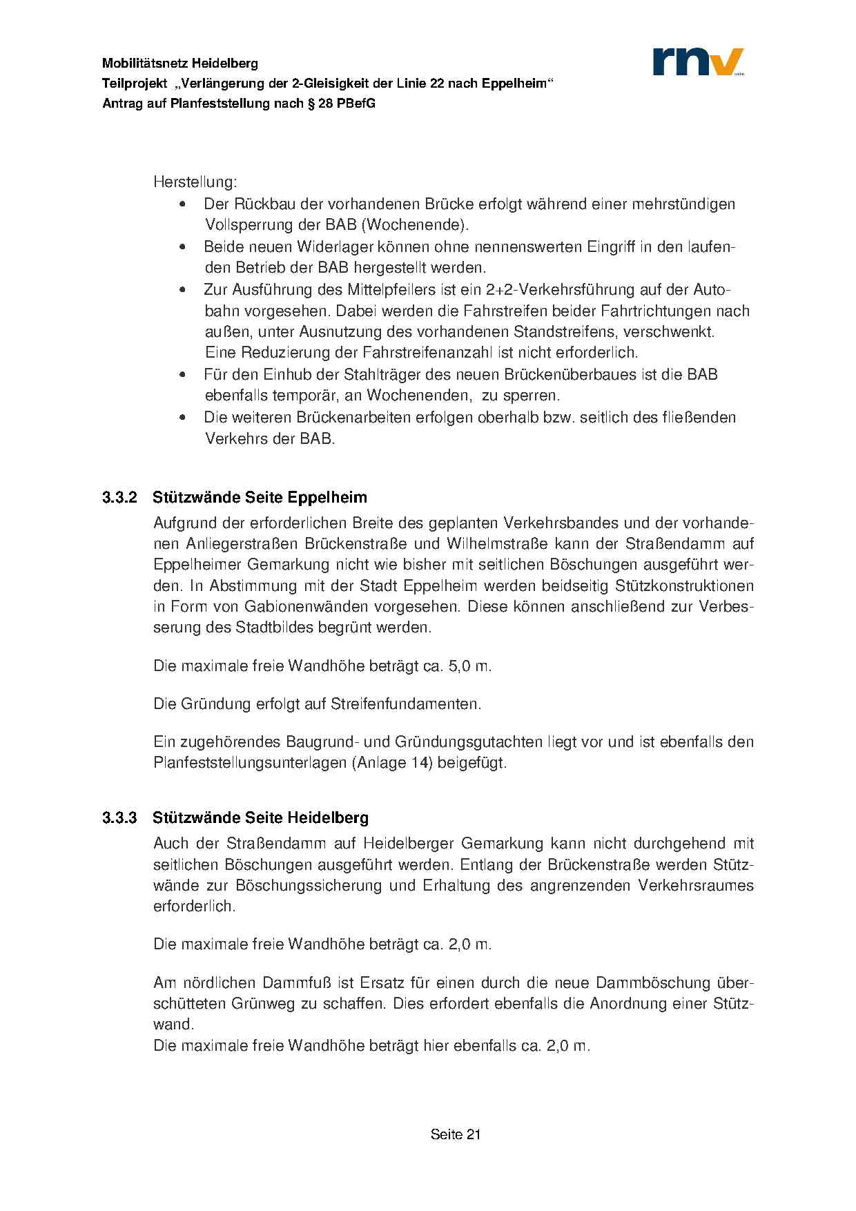 Warum belästigt man damit die Eppelheimer Bürgerinnen und Bürger? Wenn es unseren kommunalen Welterklärern wichtig erscheint, dann sollen sie es doch bitte mal der Bundesfernstraßenverwaltung oder dem Bundesverkehrsminister erklären. Das schafft Orientierung! Man stelle sich nur mal vor, Eppelheim oder Heidelberg planen zwei Gleise durch „Omas sprichwörtliche klein' Häuschen“ …- „Baustelleneinrichtung/Zuwegung (Anlage 9)“