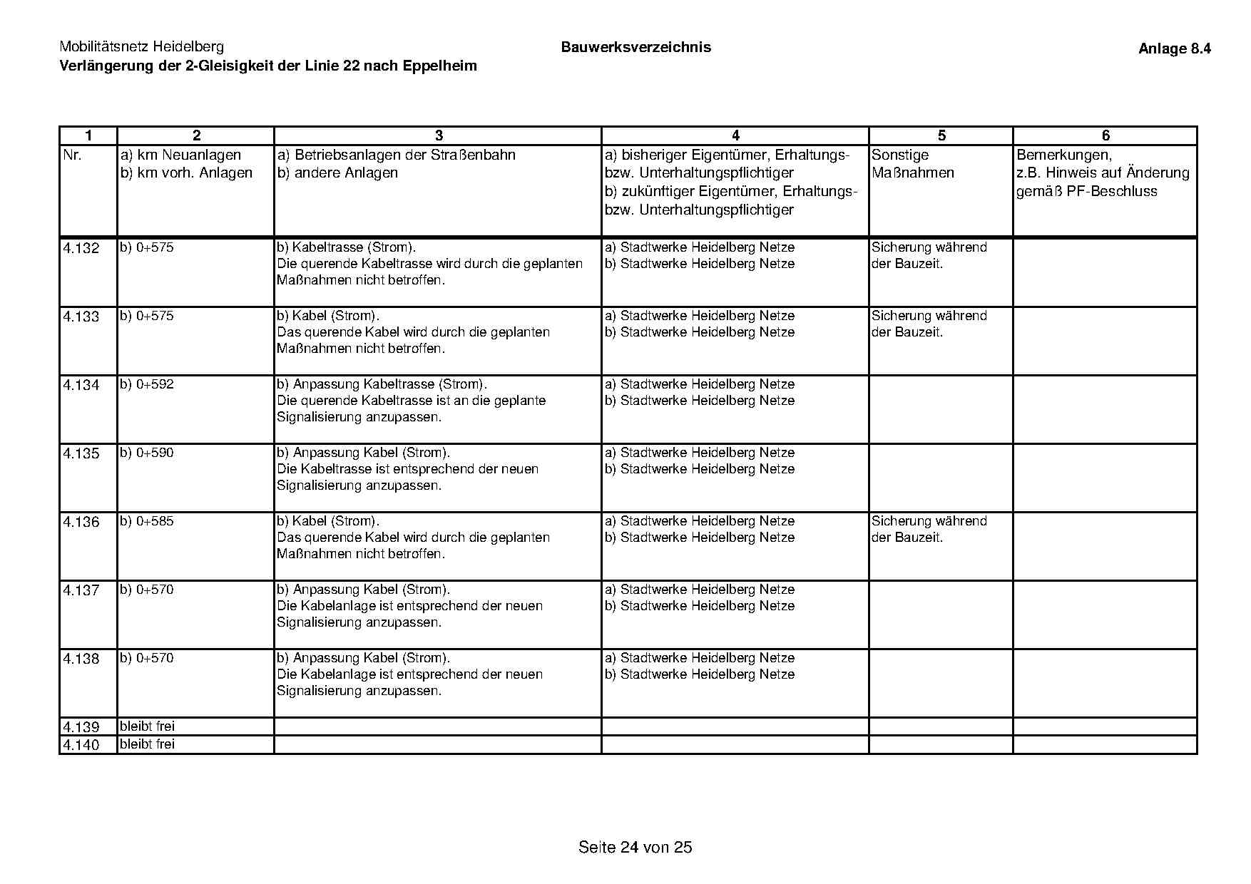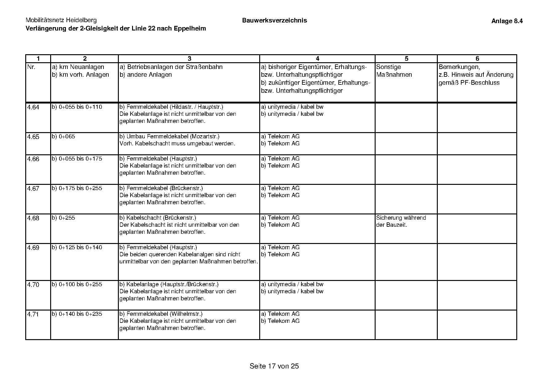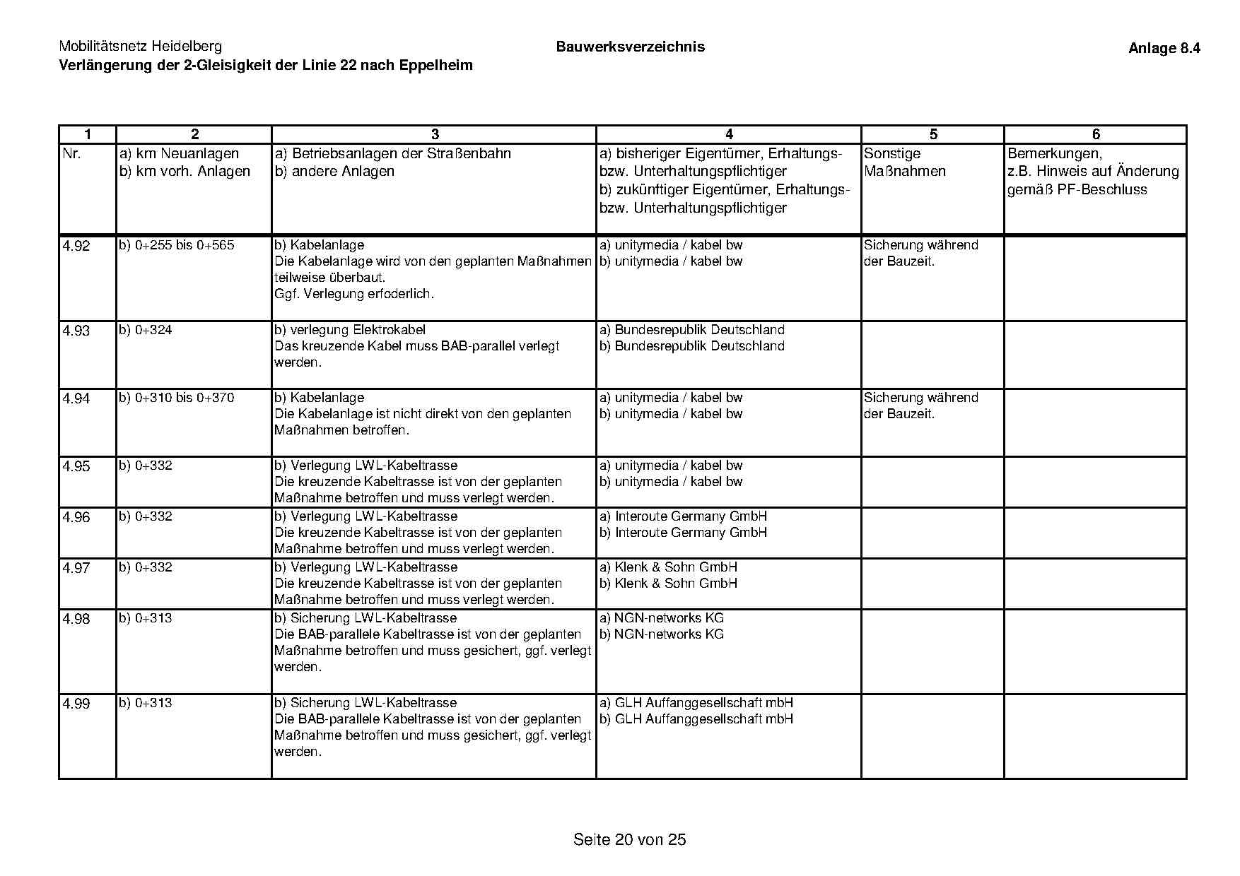 Ein 25-seitiges akribisch geführtes Verzeichnis über jedes auch noch so große wie kleine Teilbauwerk; von der großen Brücke bis zu jedem Kabel oder Rohr, das angefasst werden muss. Da steht auch, wem es gehört!
