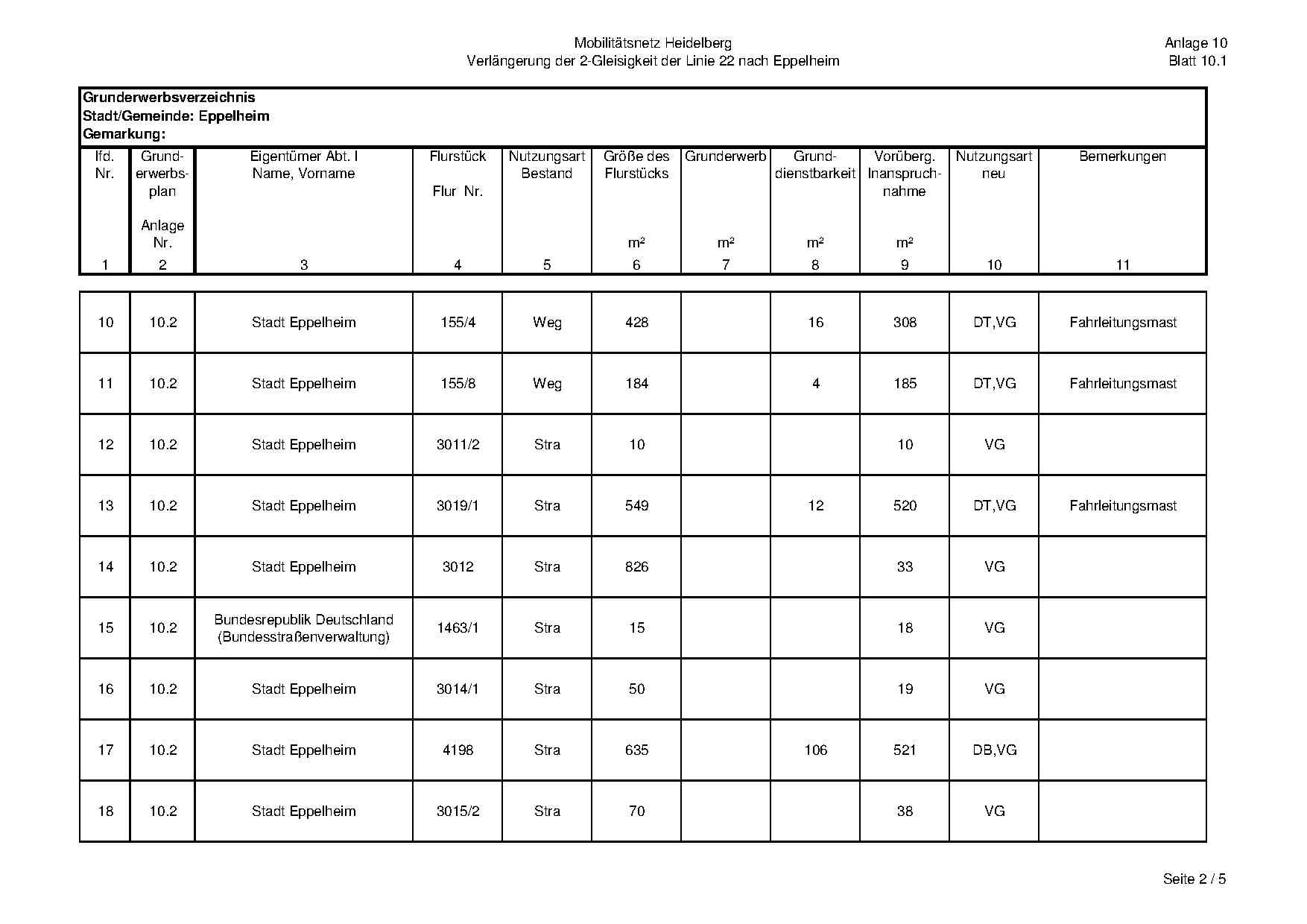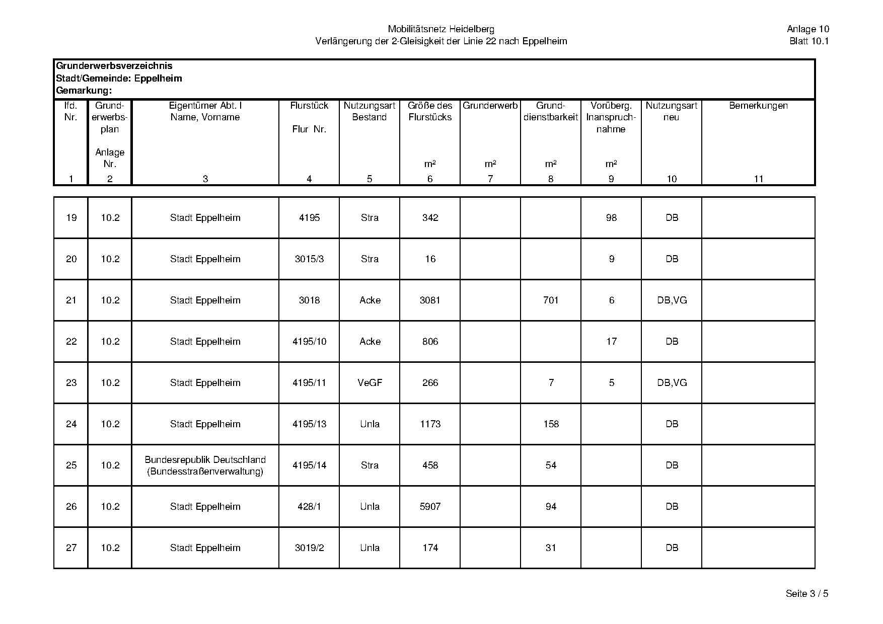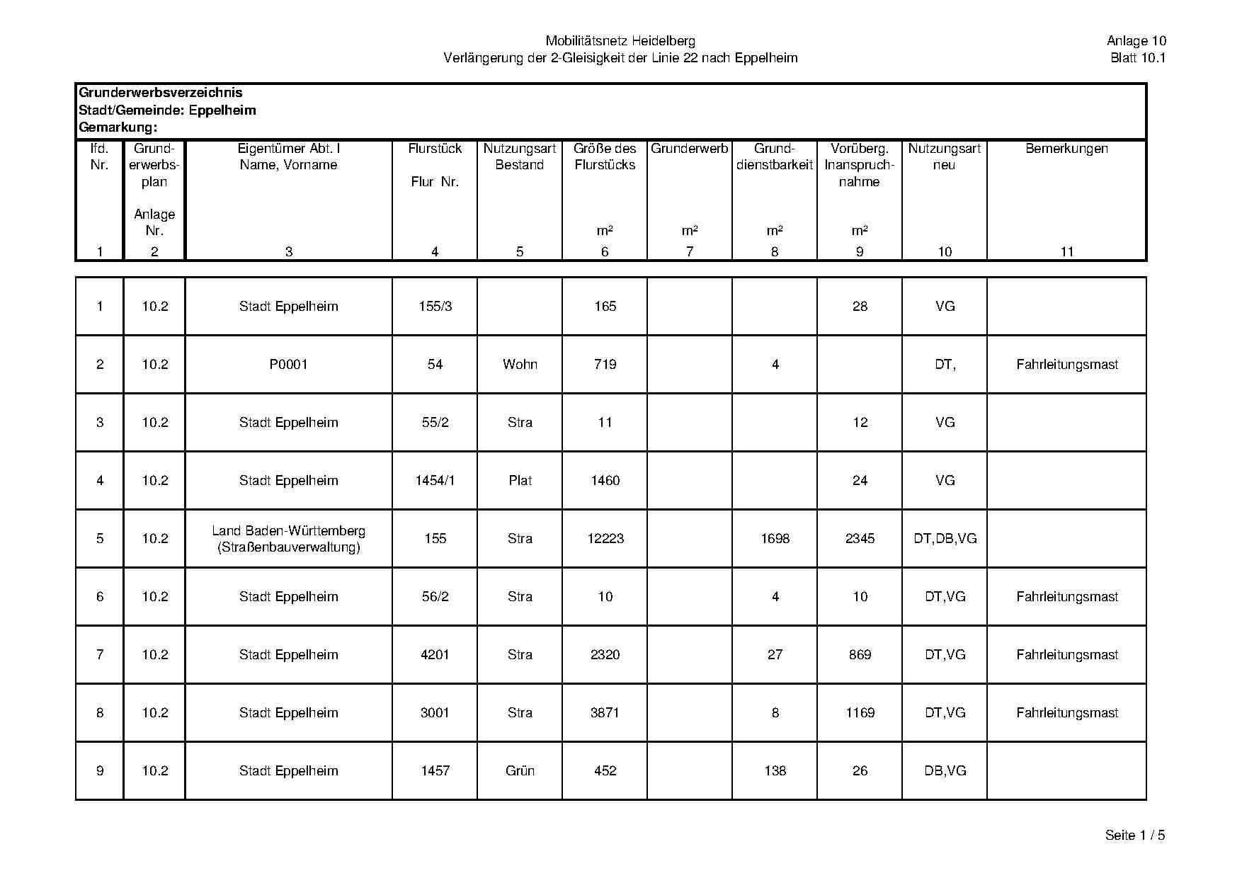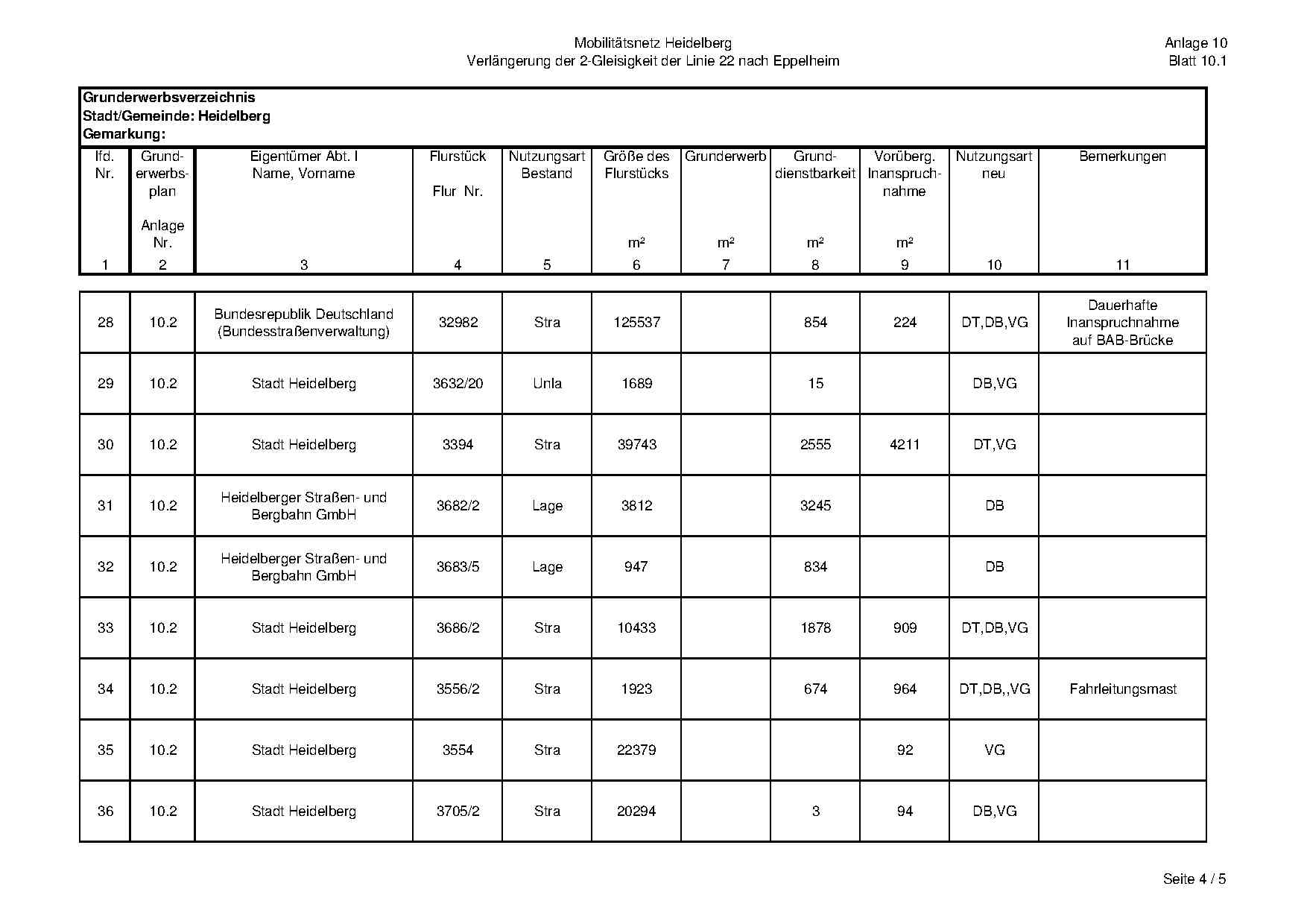 - „Grunderwerbsverzeichnis und Grunderwerbsplan (Anlage 10.1, 10.2)“