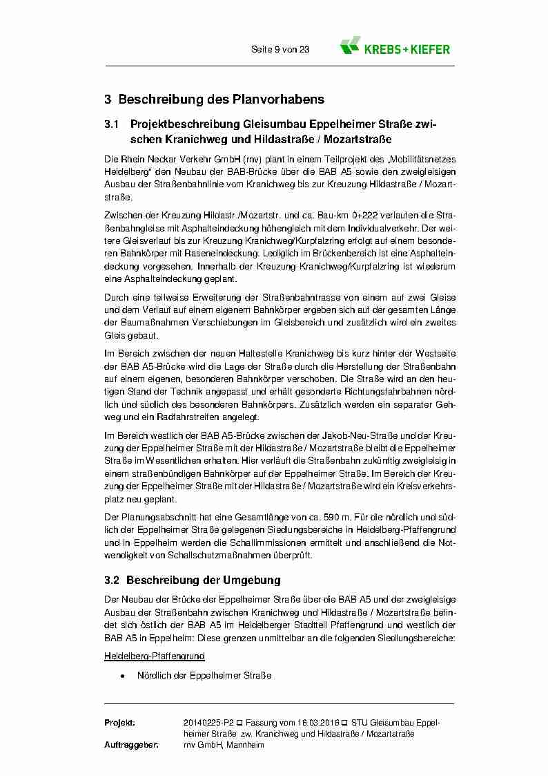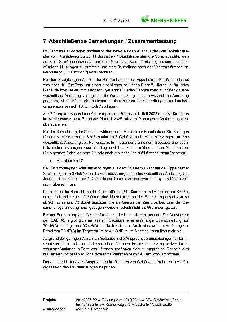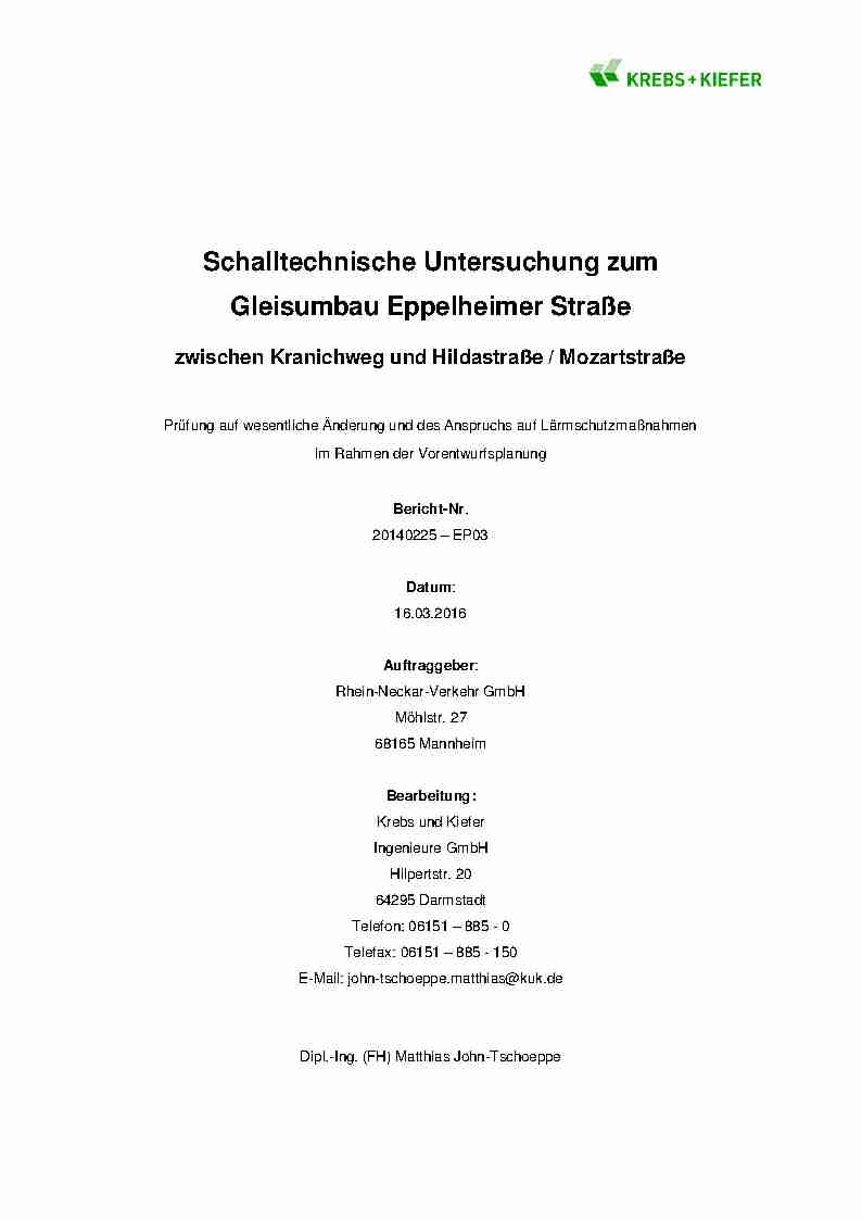 Entgegen allen anderen Untersuchungen fällt hier zunächst sofort auf, dass Auftraggeber die Stadt Eppelheim und nicht die RNV war.