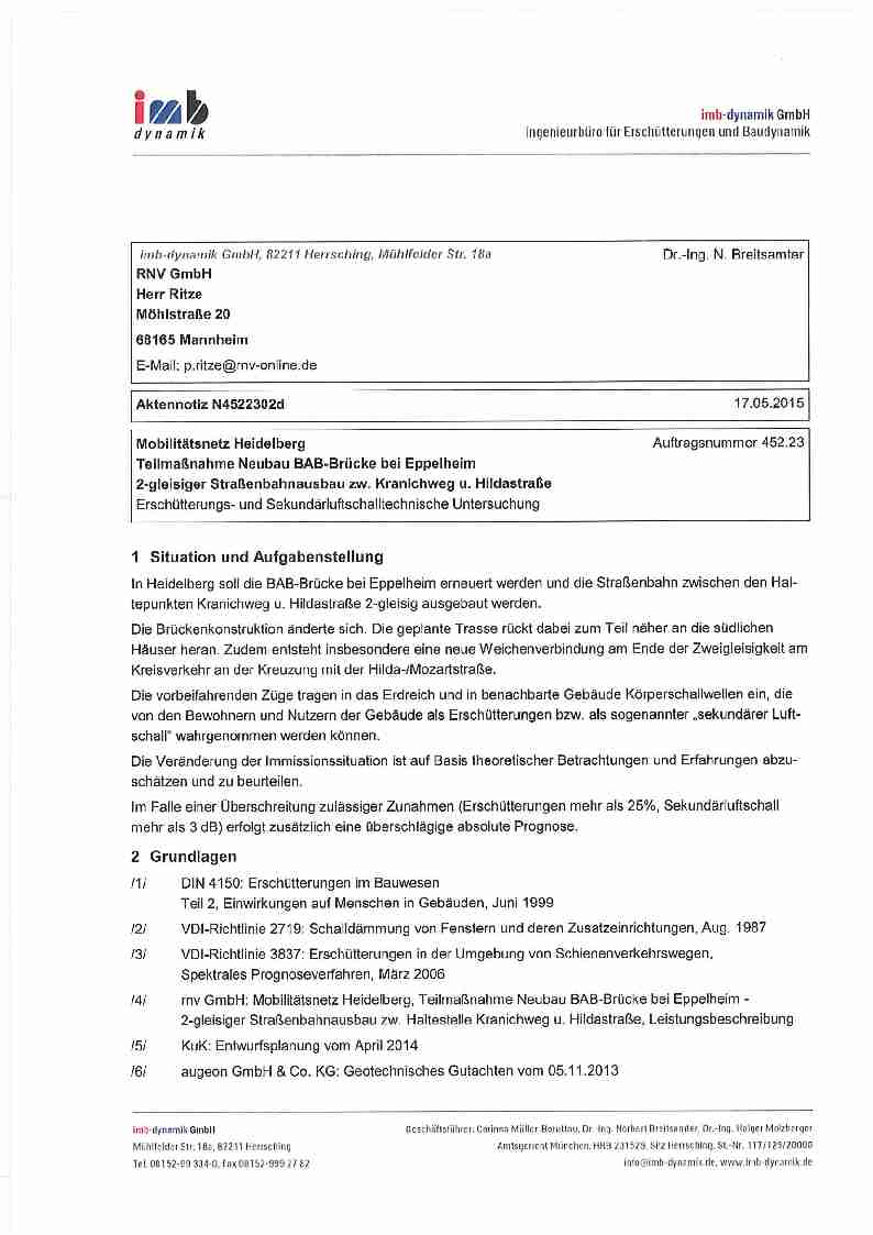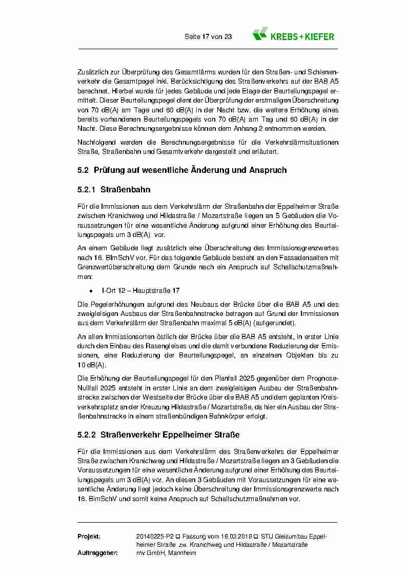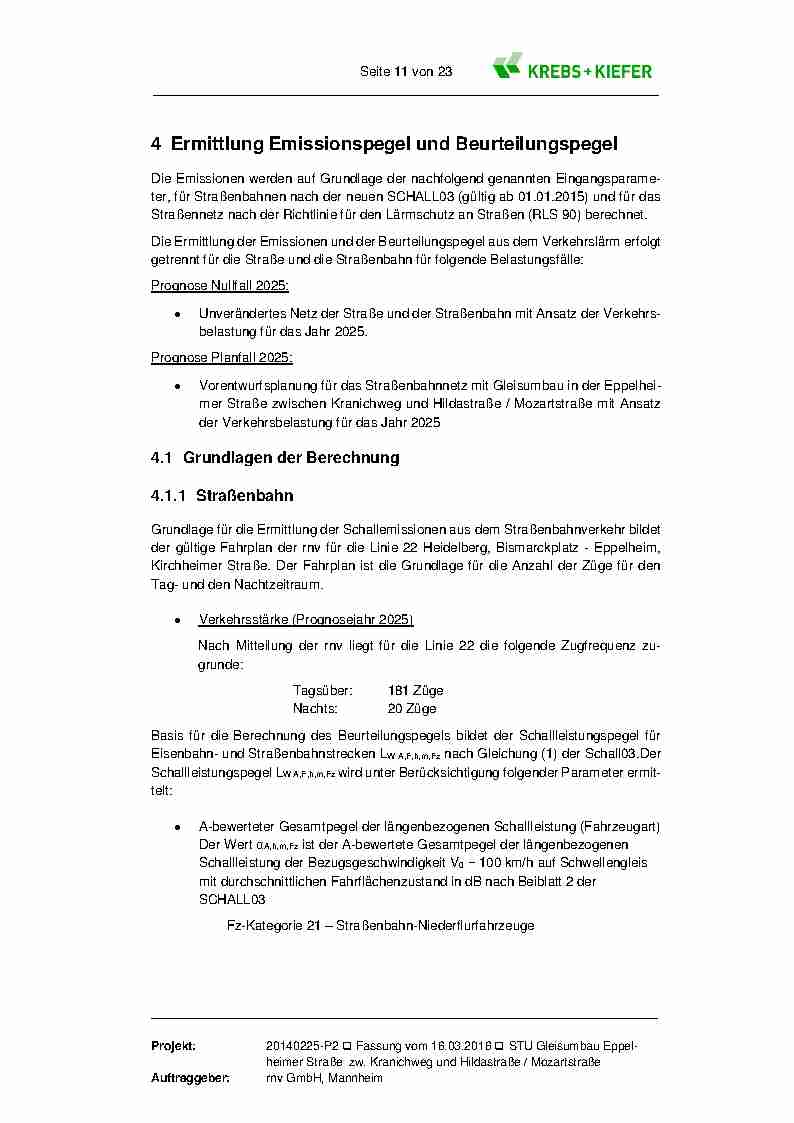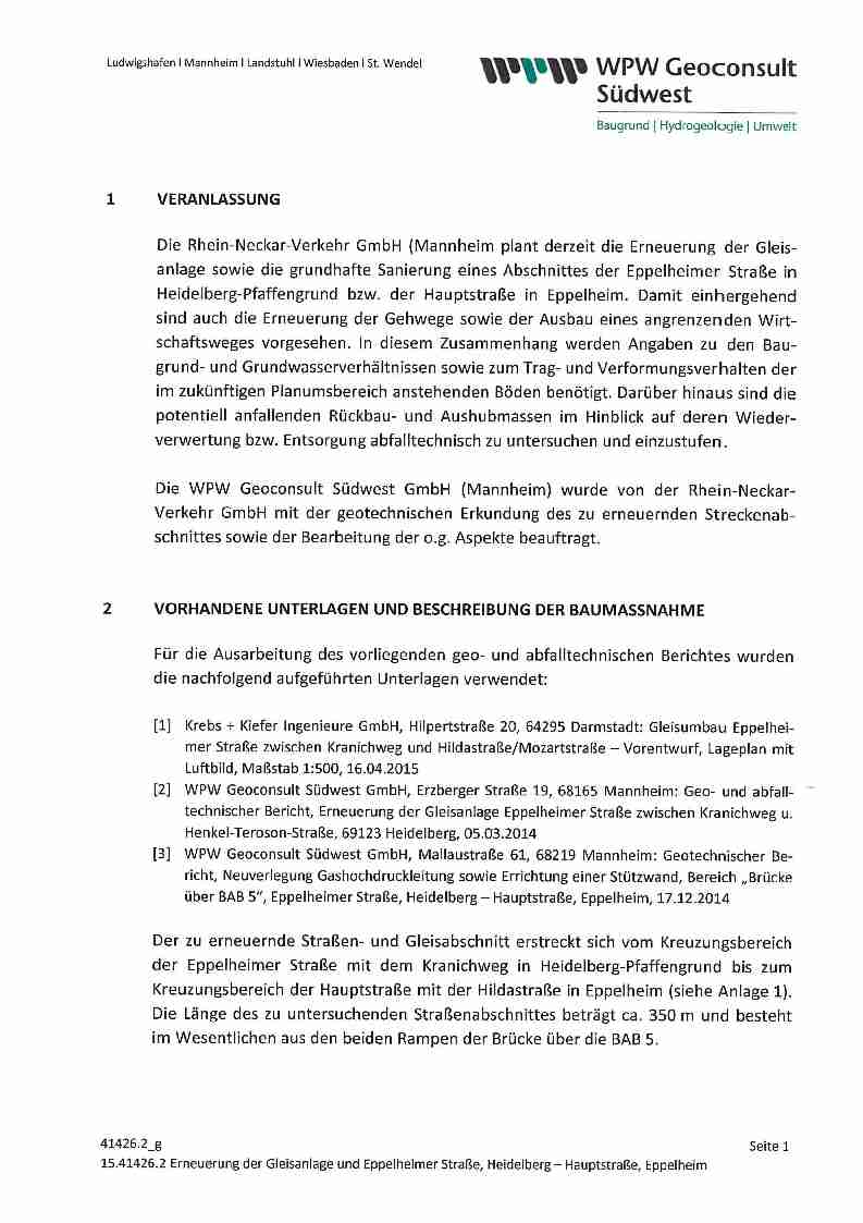 Entgegen allen anderen Untersuchungen fällt hier zunächst sofort auf, dass Auftraggeber die Stadt Eppelheim und nicht die RNV war.